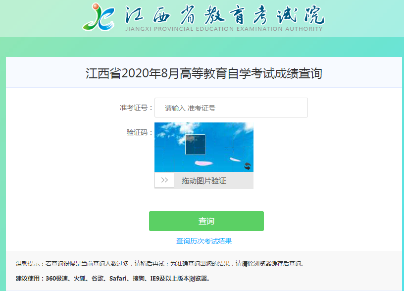 1、點擊以下成績查詢系統,進入江西自考網成績查詢系統!